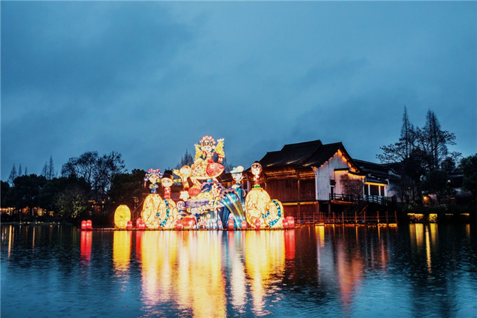 2020年(nian)1月17日(ri)(小(xiǎo)年(nian)夜),一(yi)年(nian)一(yi)度的(de)烏鎮水燈會在(zai)西栅景區(qu)璀璨亮燈,水陸兩組燈彩缤紛奪目(mu)、如夢似幻,烏鎮水鄉(xiāng)特色的(de)水上年(nian)市(shi)也(ye)熱鬧開市(shi),這也(ye)意味着“烏鎮過(guo)大(da)年(nian)”正式(shi)拉開了(le)序幕。