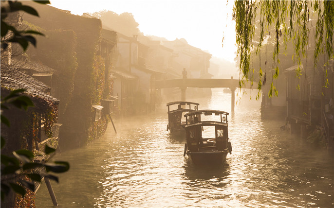 霧中(zhong)烏鎮宛若一(yi)幅絹絲(si)水墨畫卷,洇染出濃淡不一(yi)的(de)墨迹,呈現(xian)着古(gu)舊的(de)歷(li)史淵遠(yuǎn)流長(zhang)。