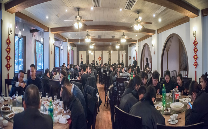 大(da)年(nian)三十晚,在(zai)兩府客棧的(de)餐廳,烏鎮旅業副總裁咊(he)總裁助理(li)以(yi)及(ji)各部(bu)相聚(ju)在(zai)此,與除夕留在(zai)公(gōng)司未能(néng)回傢(jia)過(guo)年(nian)的(de)同事一(yi)起吃年(nian)夜飯。